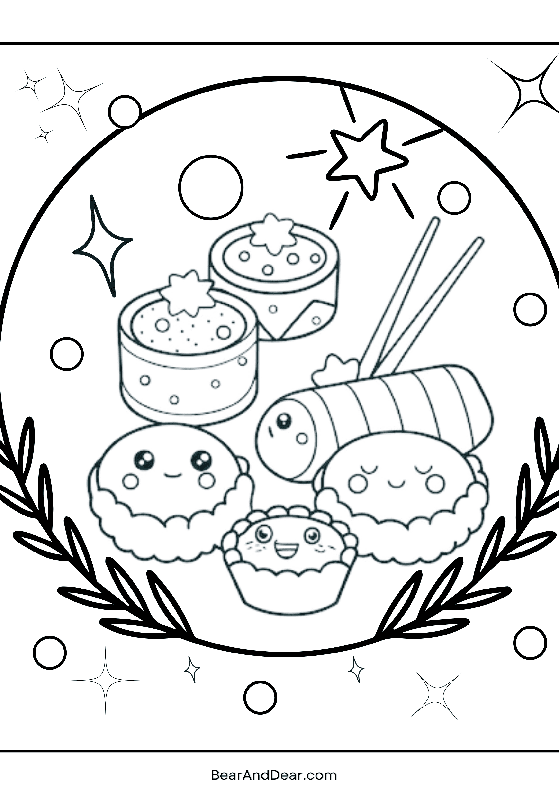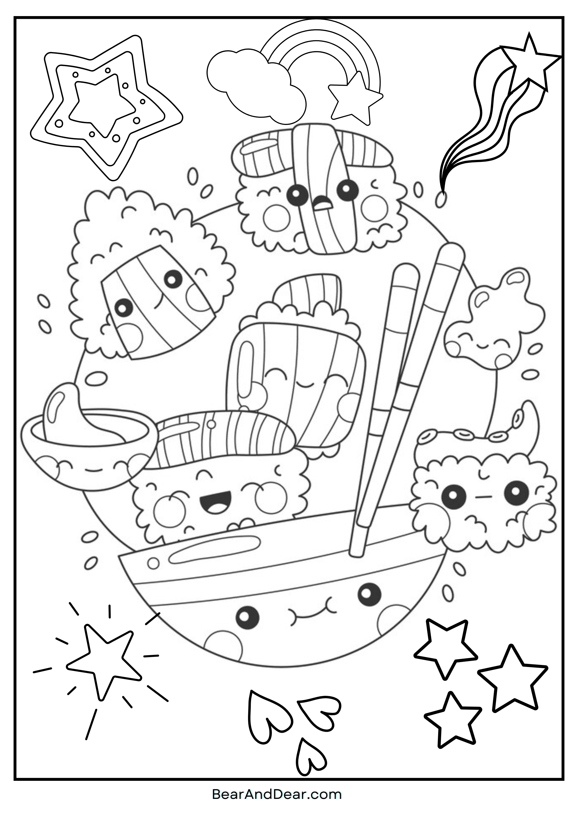 5. Majestic Best Friend Group Sushi Coloring Page