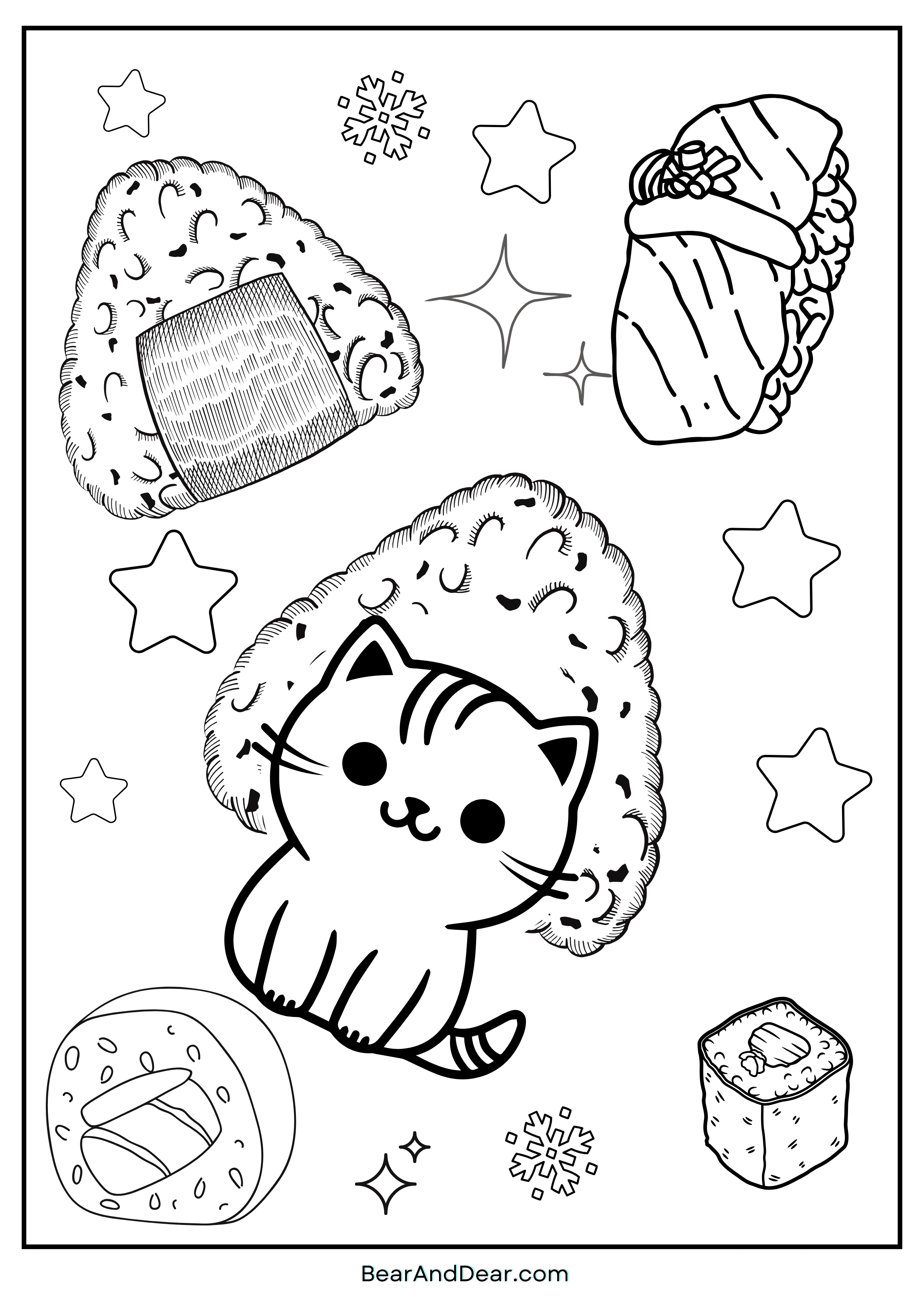 12. Rice Ball Cat onigiri (おにぎり) Coloring Page