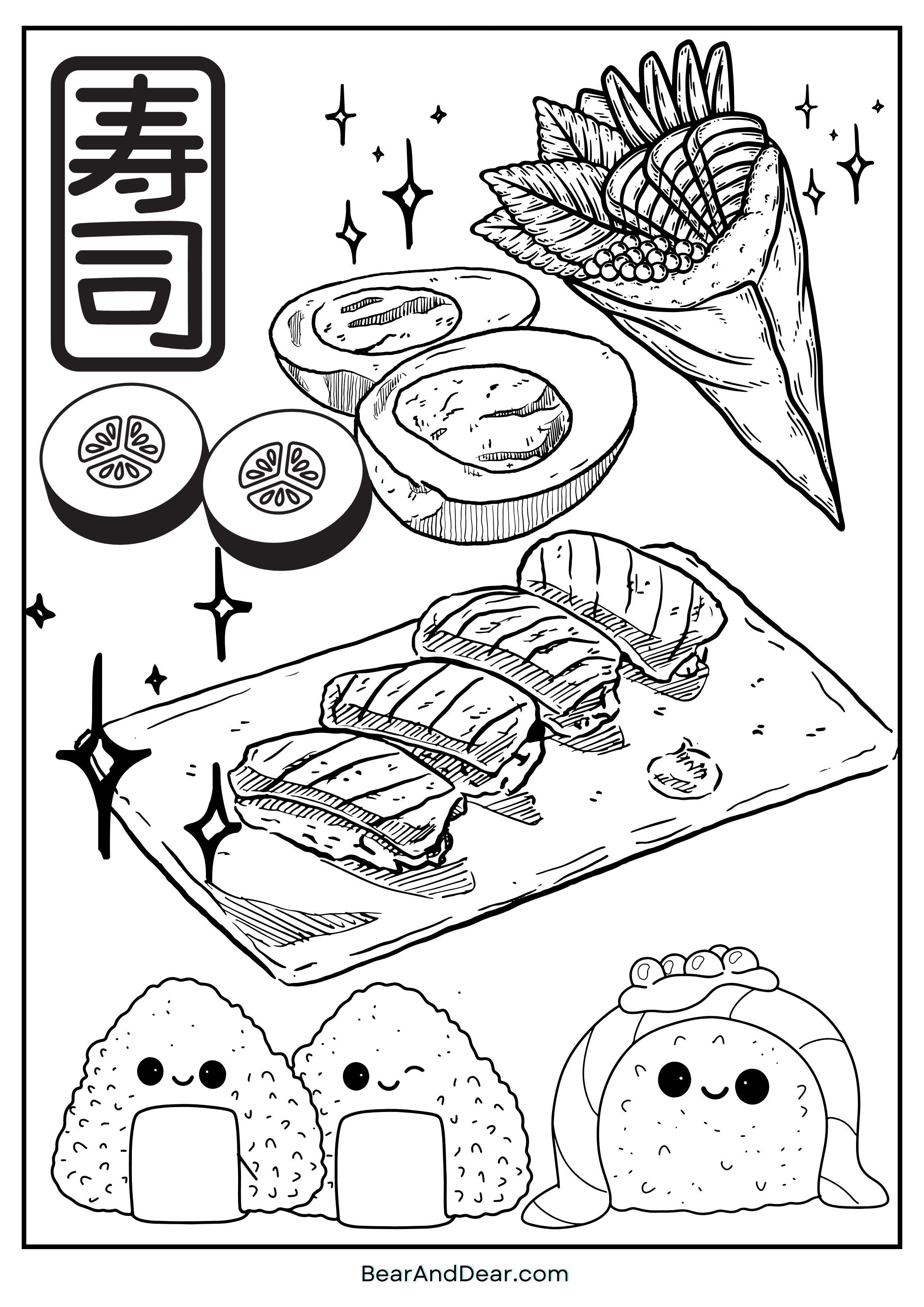The delicious Japanese Stable food is amazing choice as healthy food, bring the journey to the Japanese culinary world with your preferred coloring supplies, make your perfect sushi meals. The possibilities are endless when coloring your super cute sushi set. whether you decide to go realistic or magical. These coloring pages are perfect for any event, and don’t forget to show off your finished creations at any holiday gatherings, or even in the classroom!