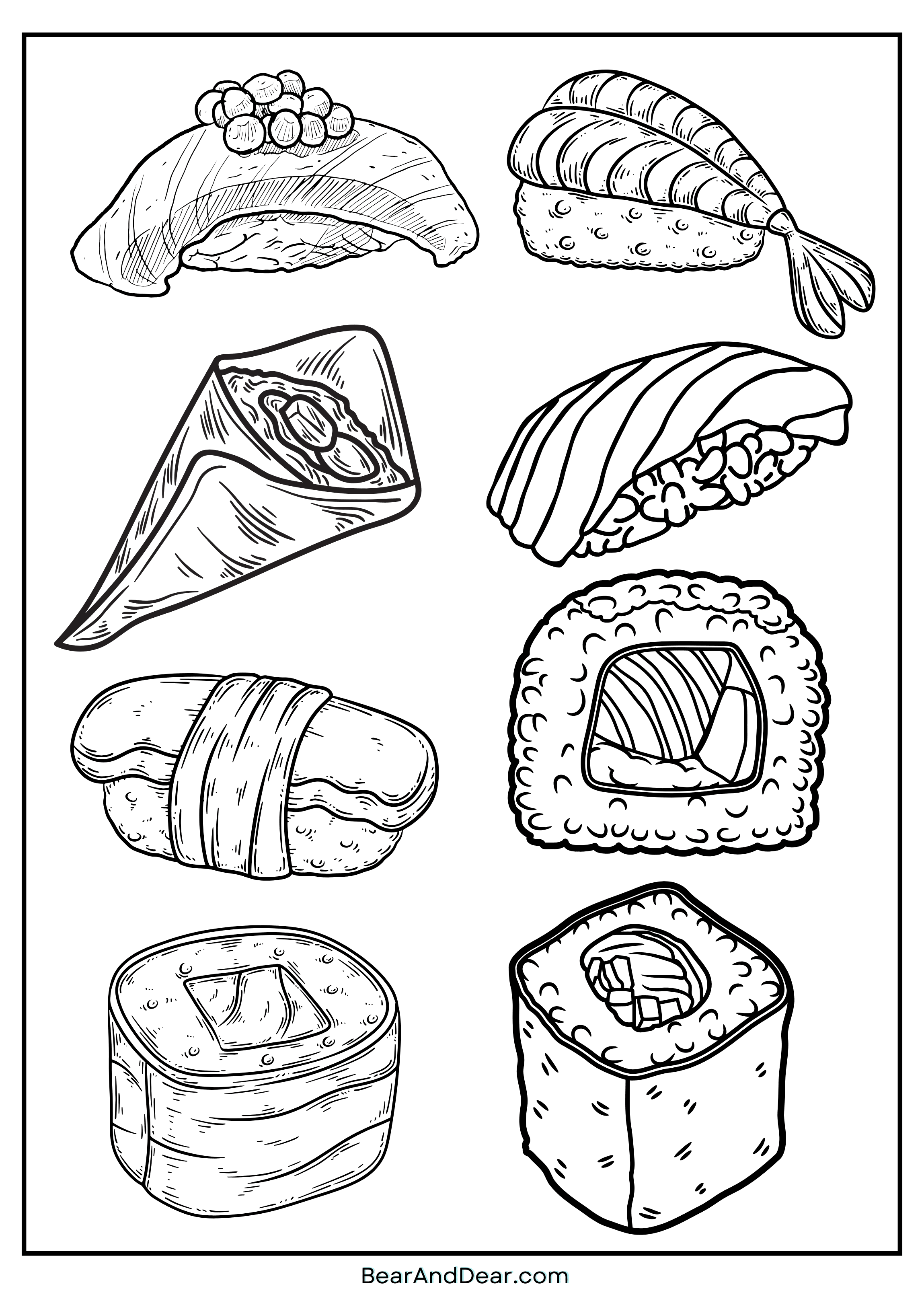 3. Variety Sushi Coloring Sheet for Kids
