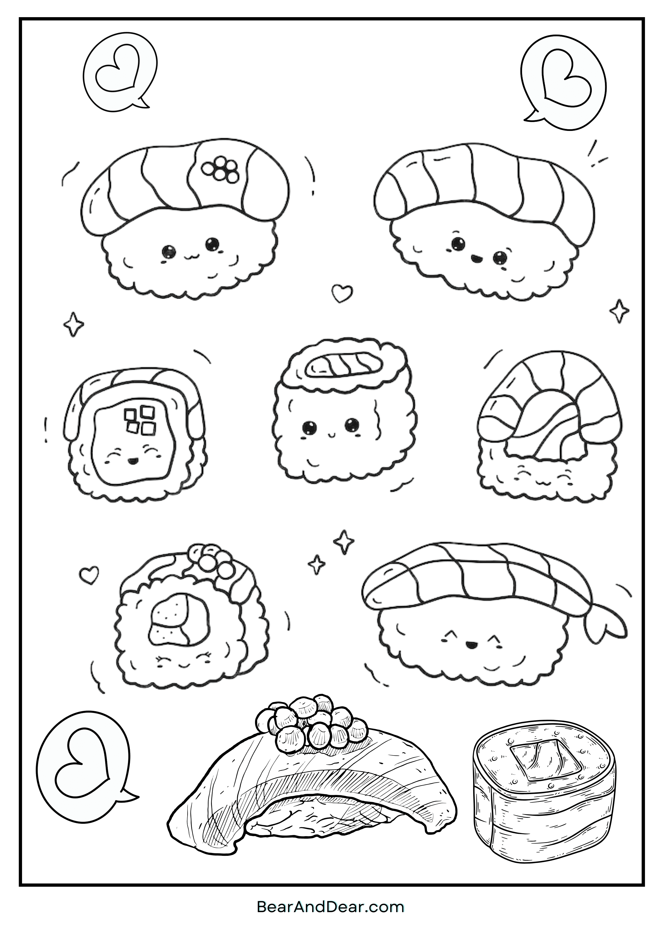 Free Kawaii Sushi Coloring Pages: