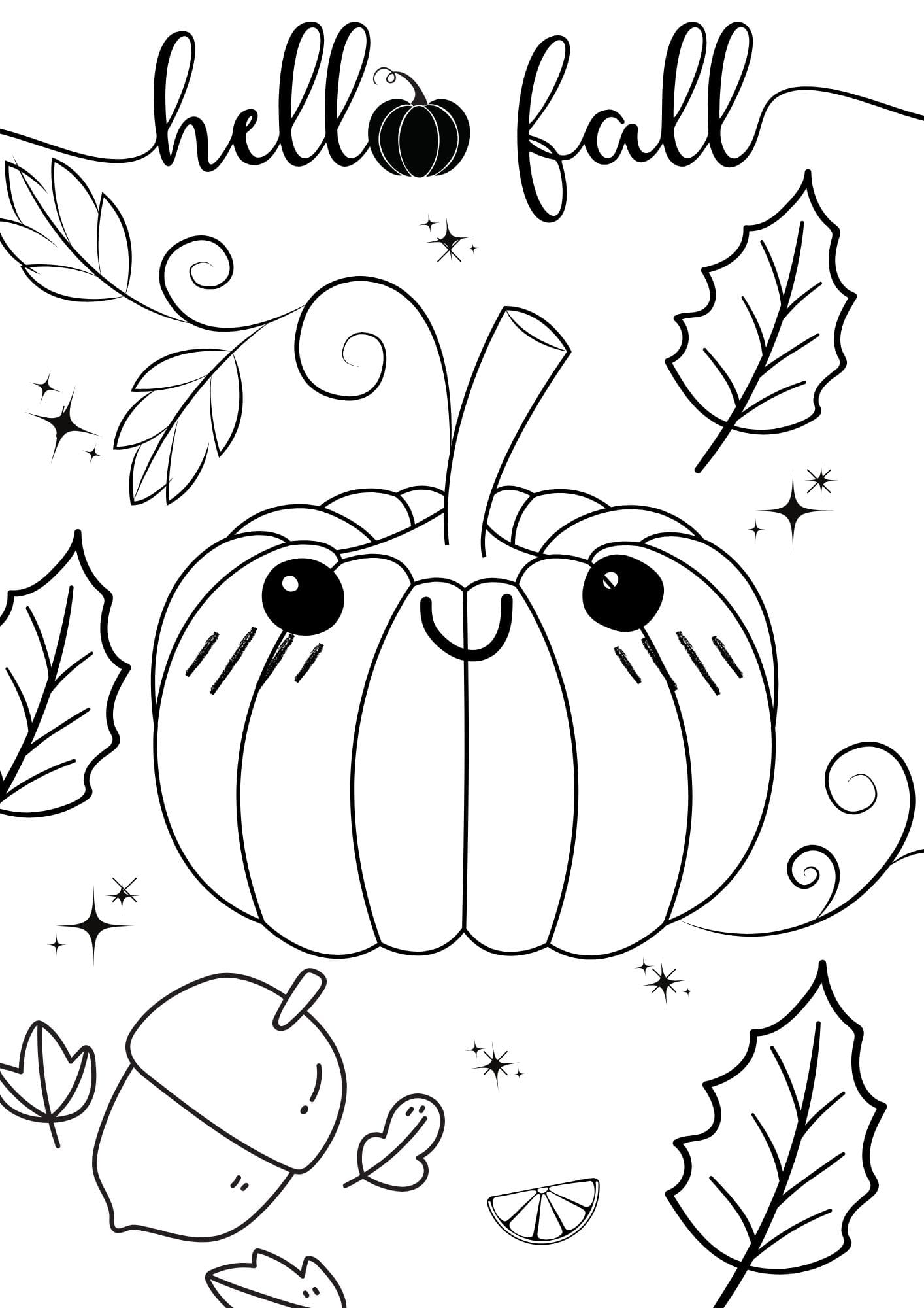 11. Hello Fall Pumpkin Coloring Page