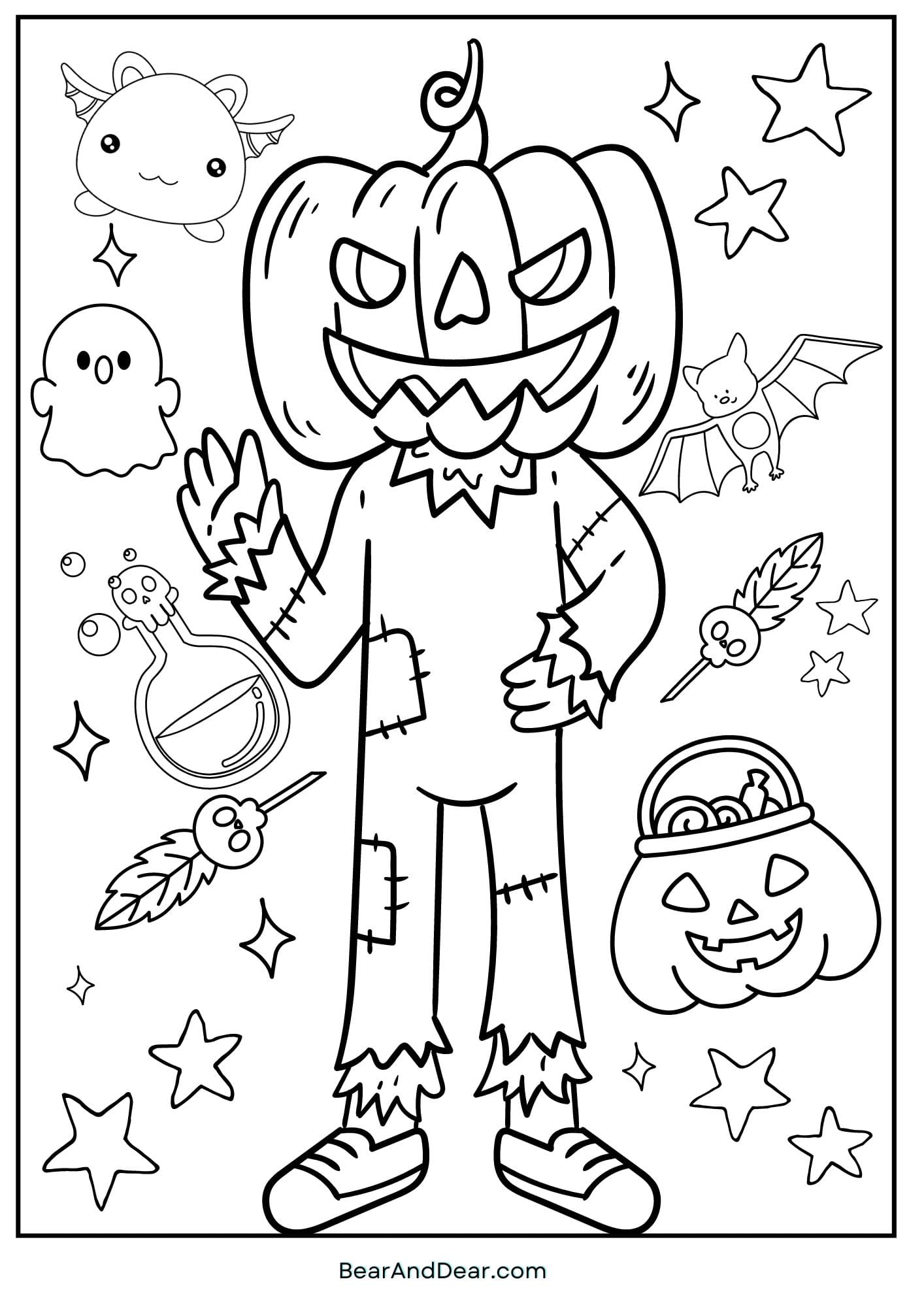 6. Spooky Cutie Pumpkin Coloring Page